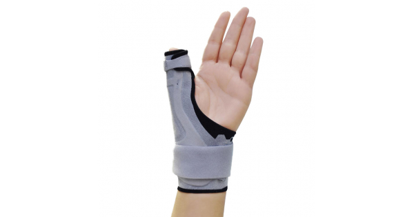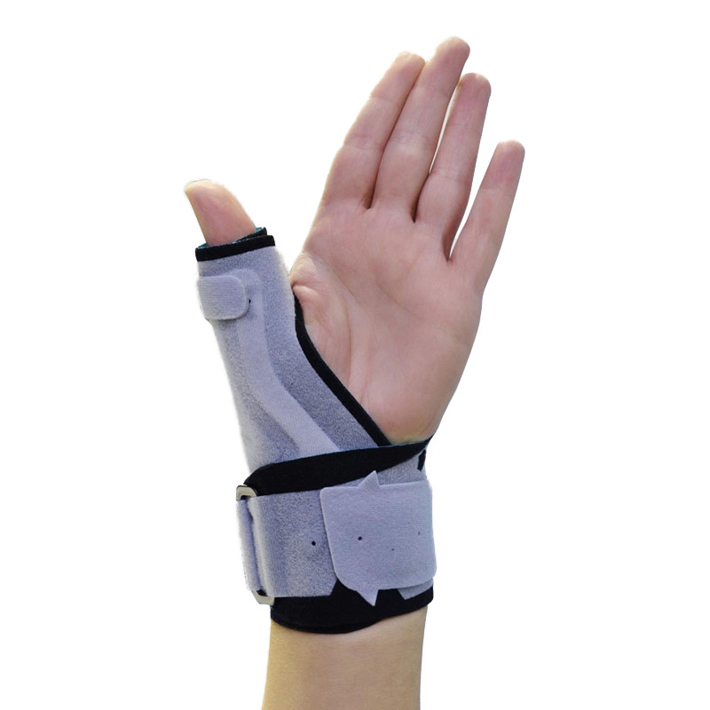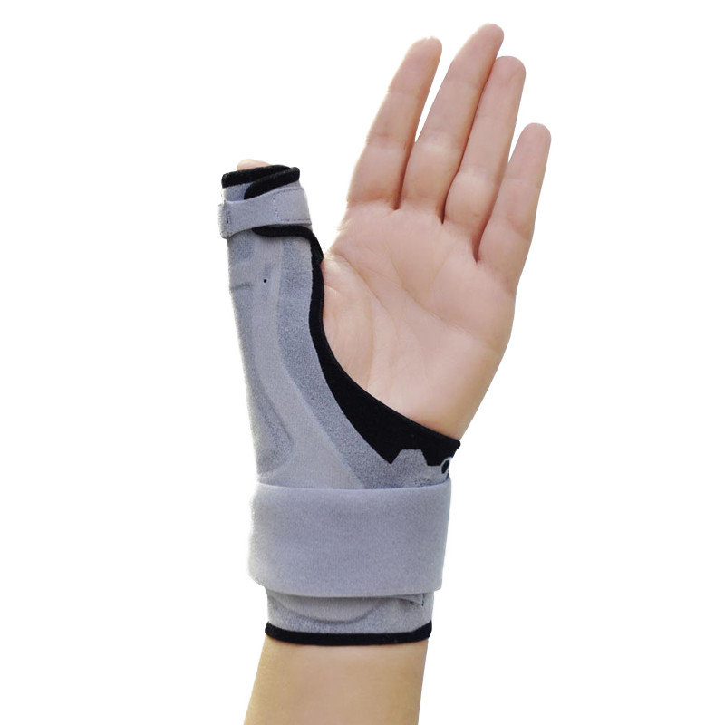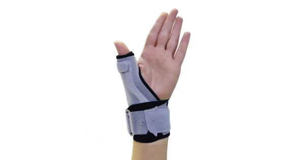 Алюминиевая опора толщиной 1 мм окружает большой палец и запястье и стабилизирует пястно-фаланговый сустав.