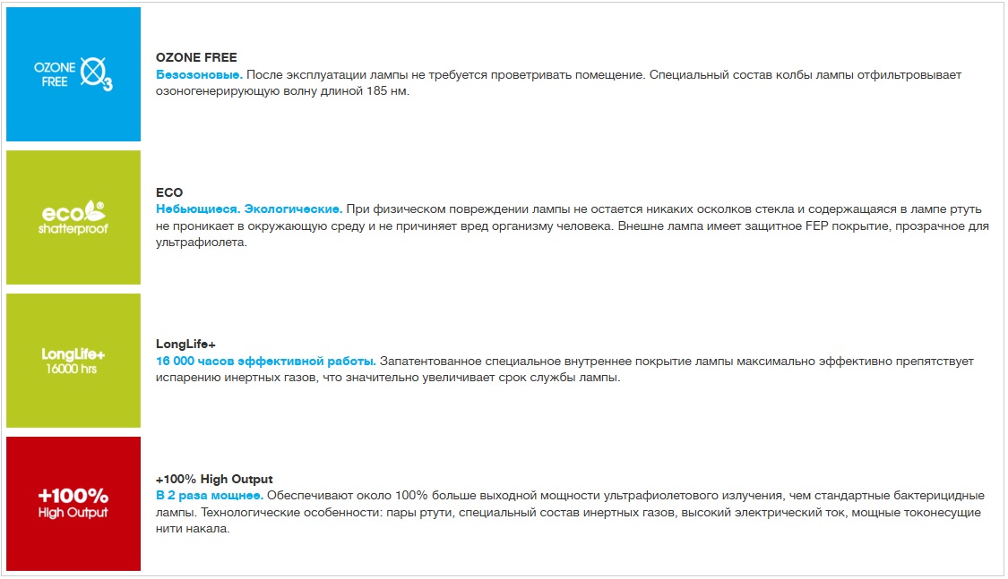 Помогает избавиться от вредоносных микроорганизмов, передающихся воздушно-капельным путём. Стерилизация воздуха устраняет порядка 99,9% патогенных микроорганизмов, среди которых возбудители вирусных заболеваний, грибки, споры, аллергены.