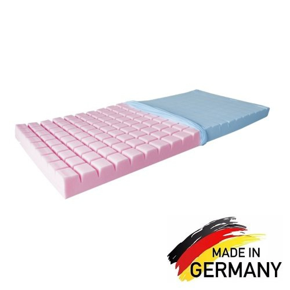 Матрас BaWü предназначен для защиты пациентов, длительно находящихся в постели, от формирования пролежней. Может применяться дома, в больницах и заведениях по уходу. Подходит для всех типов кроватей с регулируемым или нерегулируемым спальным местом с боковыми поручнями или без них. Верхняя поверхность матраса разделена на кубики, что позволяет снизить давление веса тела на мягкие ткани. Каждый кубик из плотной комфортной пены прогибается в соответствии с очертаниями тела независимо от соседних кубических сегментов, компенсируя давление на ткани и сосуды. Благодаря циркуляции воздуха в каналах между кубическими сегментами тело пациента обеспечивается адекватным воздухообменом и теплоотводом, что снижает риск потливости и образование связанных с ней раздражений. Обратите внимание: независимо от свойств матраса пациент все равно нуждается в регулярном изменении положения тела для предотвращения образования пролежней. Матрас укомплектован защитным чехлом, который помогает уберечь пенную основу матраса от загрязнений и внешних воздействий, например влаги. Матрас подходит для пациентов весом от 40 до 120 кг.
