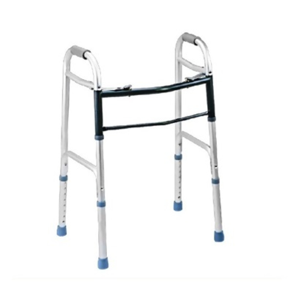 Конструкция прочная и легкая одновременно: алюминиевая рама выдерживает ежедневную нагрузку, а нескользящие резиновые наконечники обеспечивают надежную стойкость на разных поверхностях в помещении или вне его. В этих ходунках предусмотрен шагающий режим: пользователь может передвигать левую и правую половины конструкции поочередно, имитируя естественные шаги. Это удобно для тех, кому трудно поднимать и переставлять всю рамку сразу, особенно при ослабленном состоянии после болезни или операции. Высоту можно регулировать в 8 положениях, чтобы подогнать под рост пользователя. Рама ходунков складывается, благодаря чему их удобно транспортировать и хранить даже в небольшом помещении.