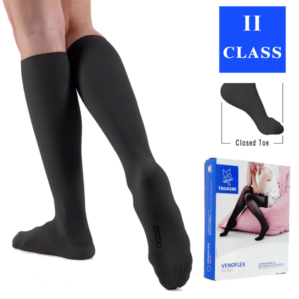 Компрессионные гольфы Venoflex Secret 5920 01, 2 класс компрессии с закрытым носком (Thuasne, Тюан) - черные