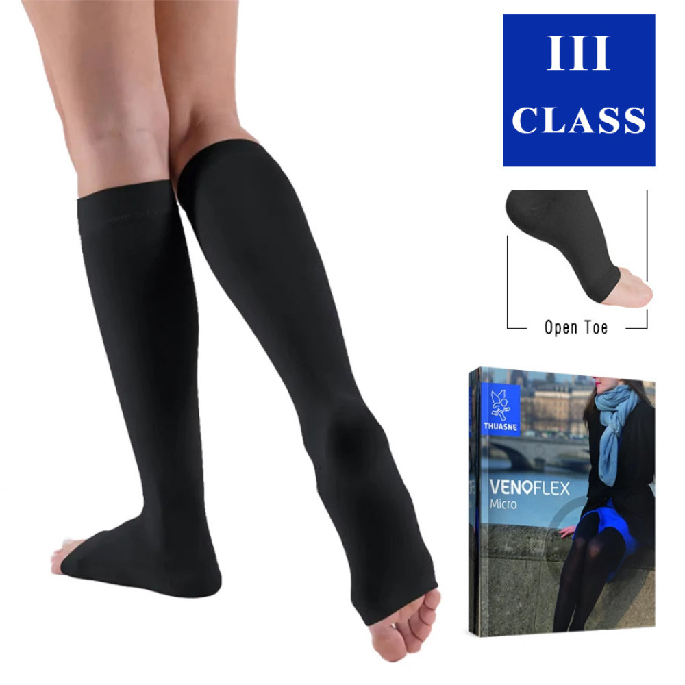 Компрессионные гольфы Venoflex Secret 5930 01, 3 класс компрессии с открытым носком (Thuasne, Тюан) - черный
