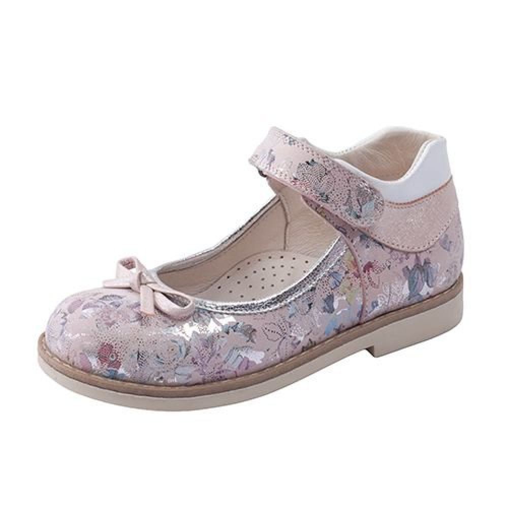 Стоит отметить, что первые позитивные результаты, вы сможете заметить буквально сразу: ребенок начнет не только меньше уставать от бега и ходьбы, но и значительно ровнее ставить ножки. Внутри туфель используется специализированная стелька повышенной жесткости, именно она обеспечивает стопе правильное положение и нейтрализует заваливание ножки ребенка. Специальная конструкция туфель позволяет носить их в теплую погоду: натуральная кожа не парит ногу и помогает поддерживать правильный термический баланс. Туфли представлены в праздничном светлом оттенке и прекрасно сочетают в себе нежный пудровый цвет и белоснежный задник, а закругленный носочек украшен милым бантиком. Благодаря повышенной комфортности и прочности изделия, туфли можно смело использовать для повседневного ношения.