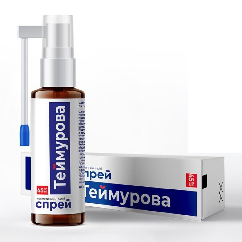 Спрей Теймурова для ніг допомагає усунути проблему вологих стоп, надає антисептичну дію, попереджає розмноження патогенних мікроорганізмів, усуває запах поту. Дарує відчуття свіжості і чистоти. Підходить для щоденного догляду за ніжною шкірою стоп. Рідка форма випуску у вигляді спрею з зручним дрібнодисперсним дозатором створюють зручність у використанні та транспортуванні.